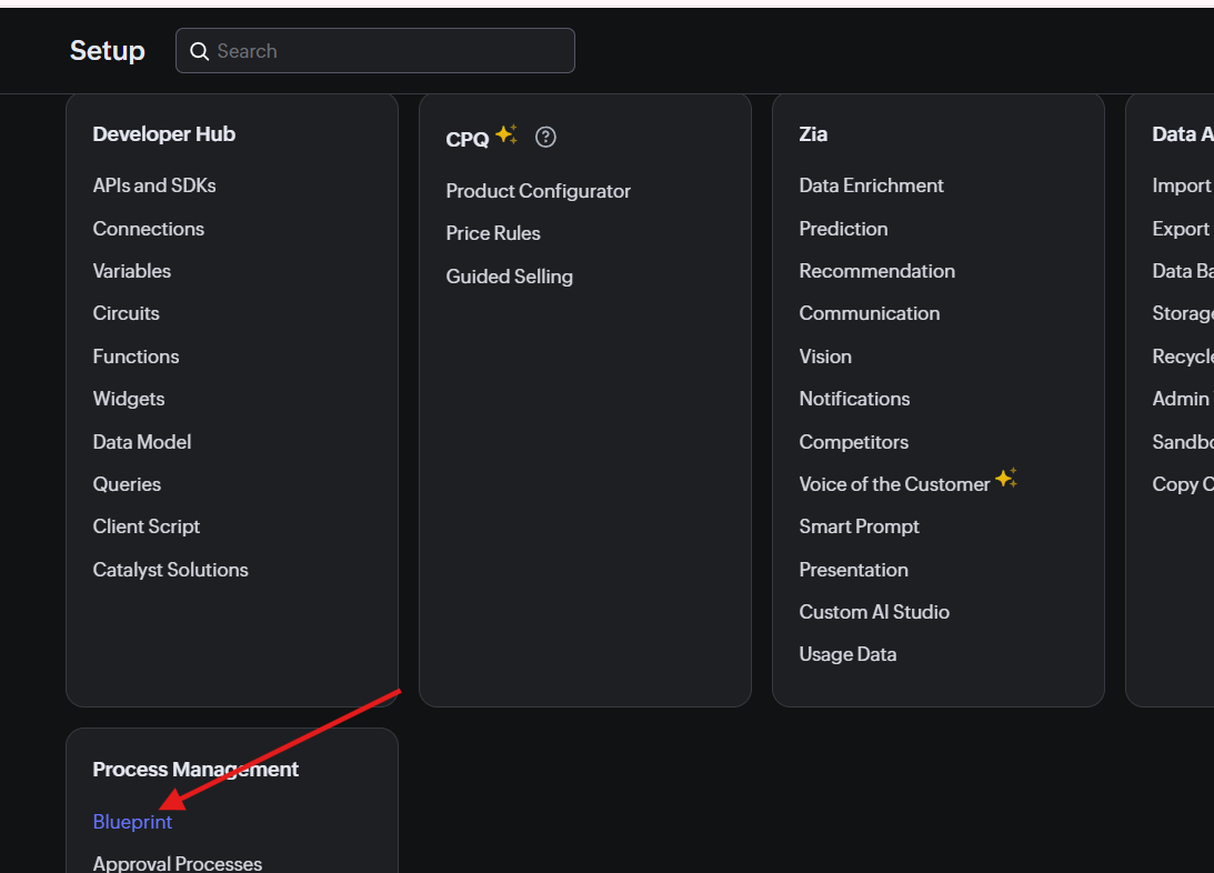 Entrar a Process Management → Blueprint.