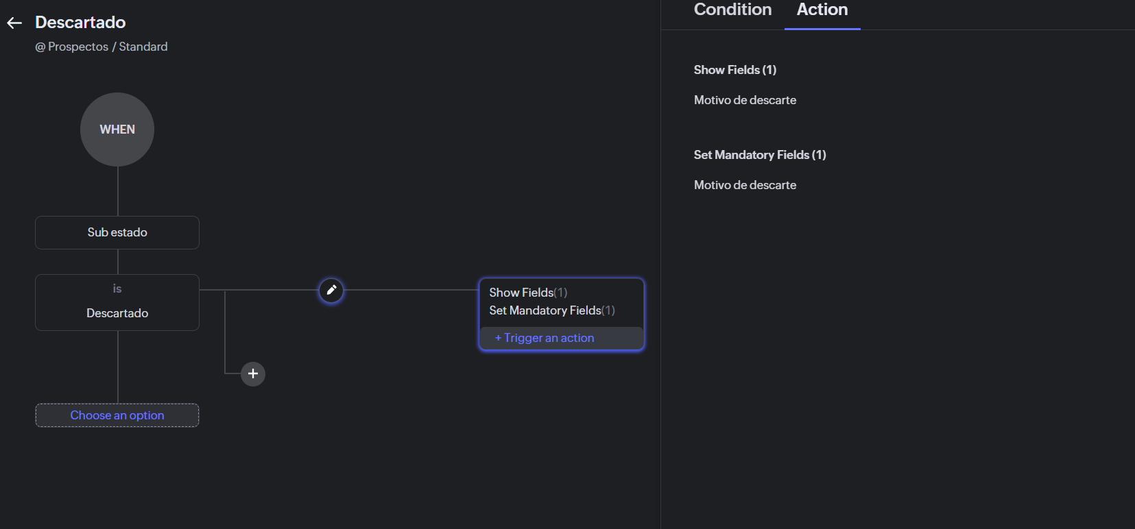Seleccionar el campo “disparador” (trigger).