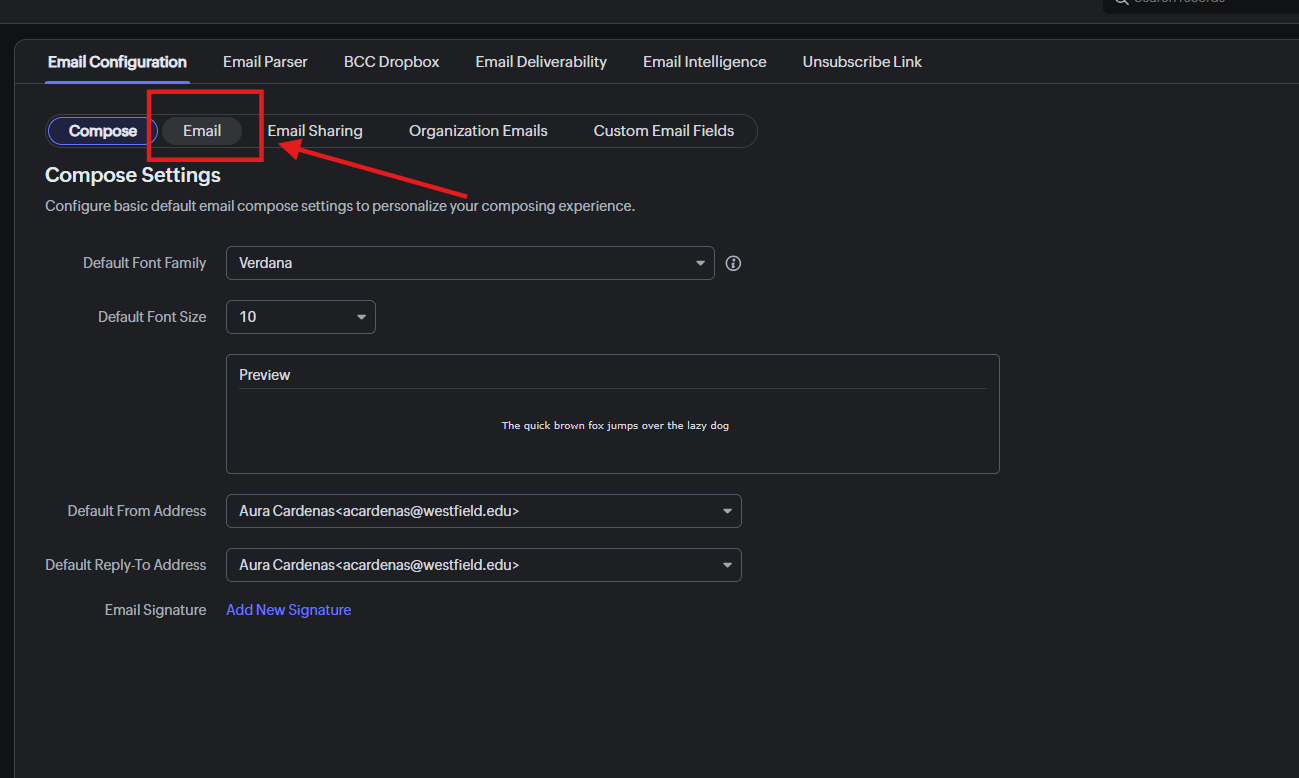 Para ver el intercambio de correos entre el lead y el agente se puede configurar desde cada usuario de la siguiente manera: