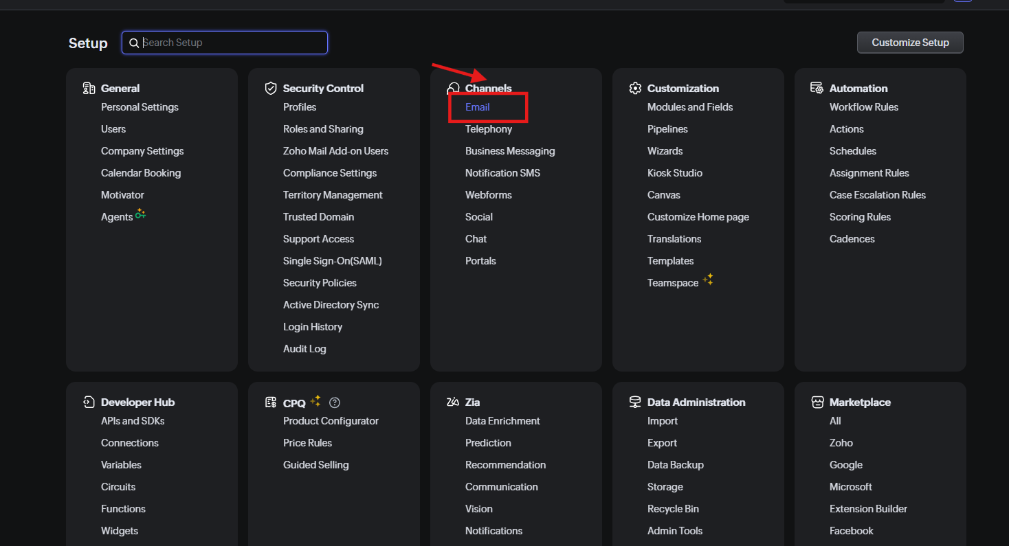 Ingresamos a la funcionalidad de email como se ve en la imagen